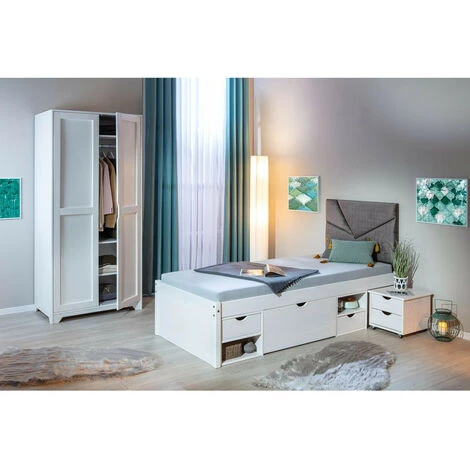 Découvrez l’armoire CLEA ! Très fonctionnelle, elle dispose de deux portes, trois étagères de rangement et d’une penderie. Sa structure en pin massif naturel la rend robuste. Associez l’armoire CLEA avec les autres produits de la même collection et profitez d’un dressing sur mesure.
