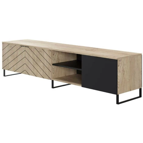 Outre ses nombreux rangements, le meuble TV Auxane saura vous sĂ©duire par son look contemporain et trĂšs tendance. Ses pieds et poignĂ©es en mĂ©tal noir, son coloris bois/noir ainsi que son motif chevrons apporteront une touche Ă©lĂ©gante et ethnique Ă votre piĂšce Ă vivre. Â