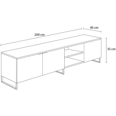 Disposant de deux niches et de trois portes, ce meuble TV dispose d’un grand espace de rangement, idĂ©al pour y ranger votre console de jeux, votre dĂ©codeur ou encore vos jeux vidĂ©o. De plus, grĂące Ă son large plateau supĂ©rieur de 200 cm, vous pourrez y ajouter aisĂ©ment votre tĂ©lĂ©vision.