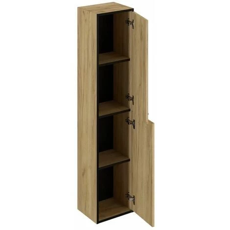Découvrez la colonne 140 cm TAMBAK fabriqué en mélamine chêne rustique. Très fonctionnelle elle dispose de deux portes avec.