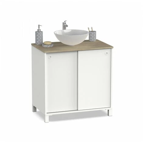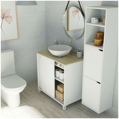 Craquez pour l’ensemble de salle de bain SOLENE ! Très tendance sa couleur blanche et son plateau en chêne apporteront beaucoup de style à votre pièce. Très pratique, le meuble de salle de bain SOLENE comprend une vasque en céramique, une étagère réglable en hauteur, un compartiment pour ranger au mieux vos cosmétiques et deux portes coulissantes à glissement double. La colonne, quand à elle, offre 2 étagères réglables en hauteur avec une porte.