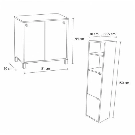 - Dimensions des éléments : Meuble de salle de bain : 81 x 50 x 94 cm Colonne : 36,5 x 30 x 150 cm