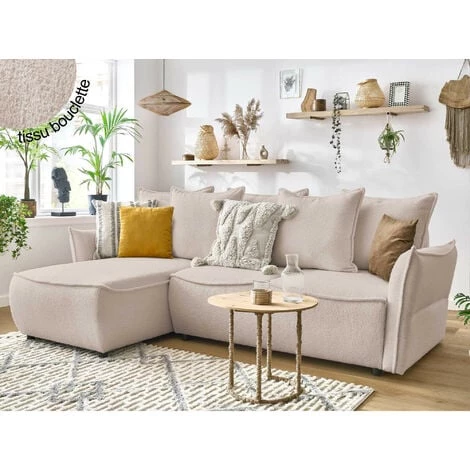 Conçu par la marque Bobochic, le canapé d’angle Léon 4 places en tissu bouclette s’inspire du style contemporain tout en mariant élégance et bien-être. Son revêtement tendance, ses lignes travaillées associées à ses formes arrondies et ses nombreux coussins dotés d’un passe poil, en font un modèle design et confortable. Existant en plusieurs coloris : beige, blanc, gris clair, gris foncé et marron, le canapé d’angle Léon 4 places sublimera votre intérieur tout en optimisant votre espace grâce à sa fonction convertible.