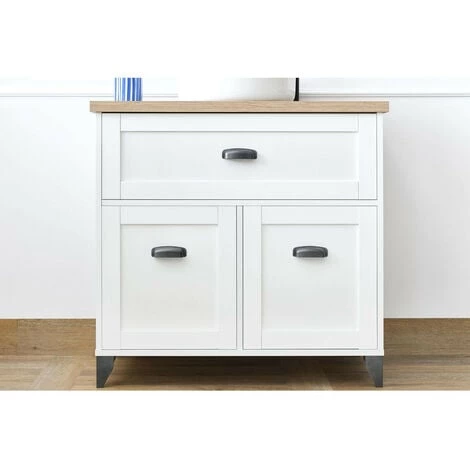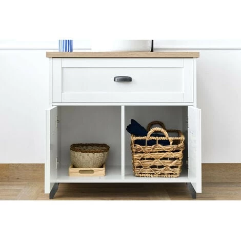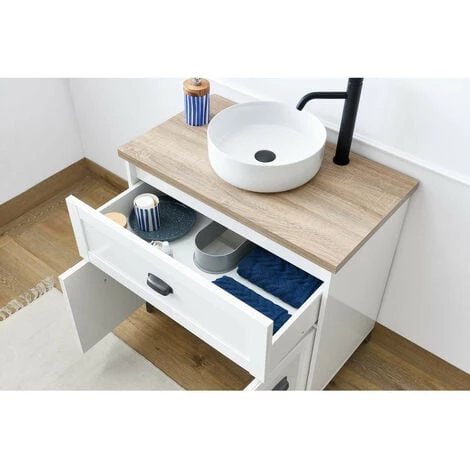 Fonctionnel, il possède 2 portes de 40 cm de haut, un large tiroir et une vasque en céramique (14x42x42).