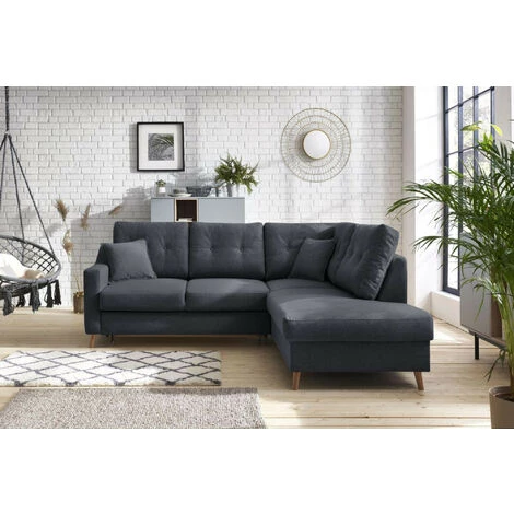 Au style simple et épuré, ce canapé d’angle Sweden ira parfaitement dans votre intérieur. Son tissu de qualité déclinés en 4 coloris, sa méridienne, sa fonction convertible et son coffre de rangement feront du canapé scandinave Sweden votre meilleur allié. Il apportera charme et convivialité.