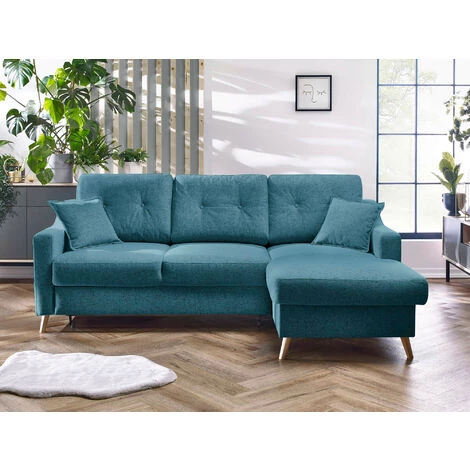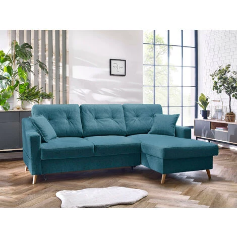 Fabriqué en Europe, le canapé d’angle Sweden comporte des qualités pratique et fonctionnelles. Grâce à son assise moelleuse, vous pourrez être 4 personnes sur ce canapé. Sa fonction convertible qui se déplie rapidement en un couchage de 190×140 cm est idéale pour accueillir vos amis. Pour ranger la couette, les coussins ou plaids, un coffre de rangement est situé sous la méridienne.