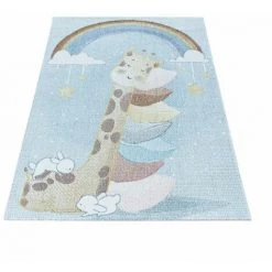 Tapis Enfant BOBOCHIC – Tapis Enfant Shaggy Rond FLAMANT ROSE Imprimé 120×170 Rose – Rose