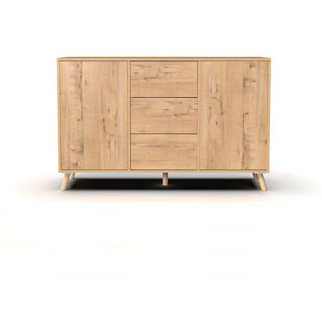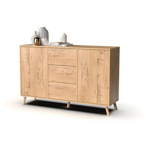 Optez pour le buffet OTTO ! Très tendance, il fera de votre salon un endroit cosy. Pratique, il dispose de 2 portes et 3 tiroirs avec des étagères réglables en hauteur. Sa finition imitation chêne apportera une touche de nature dans votre pièce !