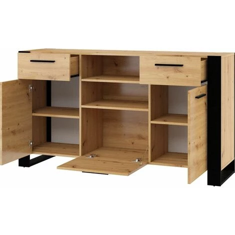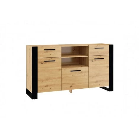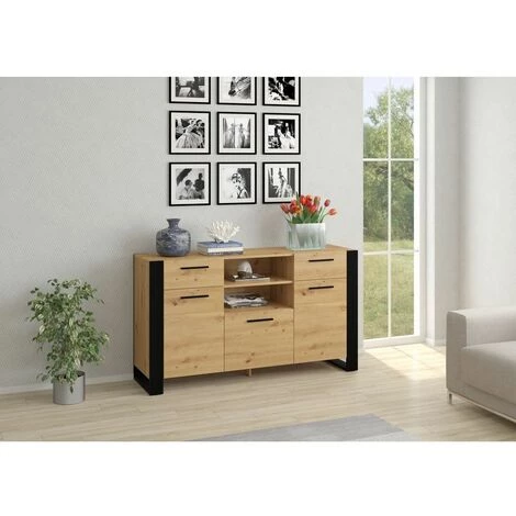Le buffet NUKA, très pratique et tendance, saura réchauffer votre intérieur. Sa couleur bois et ses pieds hauts lui donnent un style incomparable. Il dispose de nombreux rangements, à savoir 3 étagères, 2 tiroirs et 2 niches centrales.