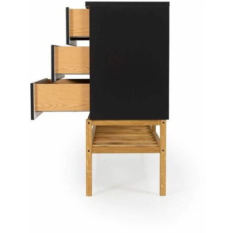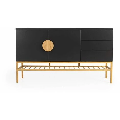 Buffet comprenant 2 portes et 3 étagères (dont 2 réglables). Disponible en deux coloris.