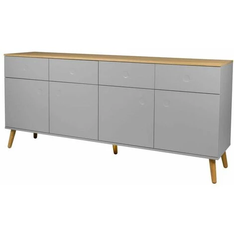Buffet composé de 4 portes, 4 tiroirs et 4 étagères. Disponible en plusieurs coloris.