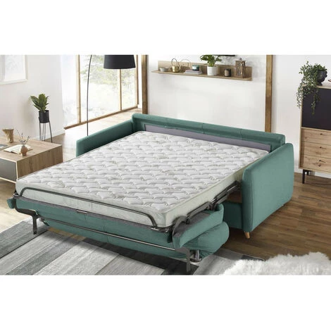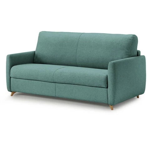 Ce canapé droit MATY propose de nombreux atouts. Il s’adapte à tous les intérieurs grâce à son style simple et épuré. Sa structure en hêtre et ses pieds en bois amènent une touche chic. En plus d’être confortable et convivial, il est convertible et permet de recevoir ses amis ou sa famille. Équipé d’un matelas de 15 cm et d’un tissu Jacquard en Aloe Vera, il peut devenir un couchage quotidien.