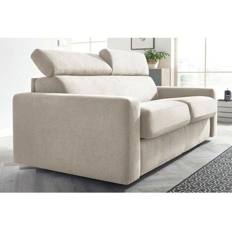Très pratique et fonctionnel, il est doté d’un couchage avec matelas de 189×140 cm d’une épaisseur de 12 cm et d’un mécanisme métallique avec sangles au niveau de la zone des pieds. Profitez d’un véritable matelas avec une densité de mousse de 28 kg/m3 pour un confort de longue durée. Les têtières relax sont ajustables pour un confort de grande qualité et l’assise en mousse HR 30 kg/m3 vous fera aimer les heures de détente passées dans votre canapé.