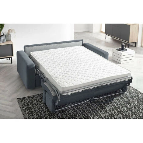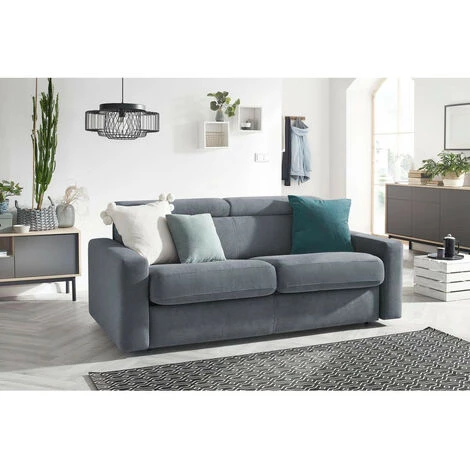 Très pratique et fonctionnel, il est doté d’un couchage avec matelas de 189×140 cm d’une épaisseur de 12 cm et d’un mécanisme métallique avec sangles au niveau de la zone des pieds. Profitez d’un véritable matelas avec une densité de mousse de 28 kg/m3 pour un confort de longue durée. Les têtières relax sont ajustables pour un confort de grande qualité et l’assise en mousse HR 30 kg/m3 vous fera aimer les heures de détente passées dans votre canapé.