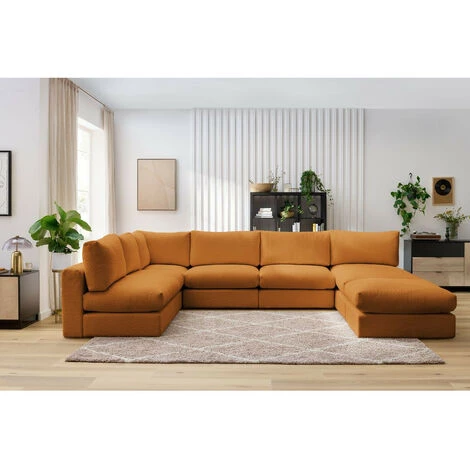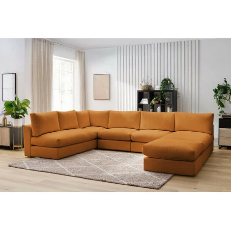 Canapé Modulable BOBOCHIC – Canapé D’angle Fixe 100% Modulable Ultra Moelleux PARIS Tissu Bouclette 3 Chauffeuses, 1 Méridienne, 1 Angle, 1 Pouf Ocre – Ocre