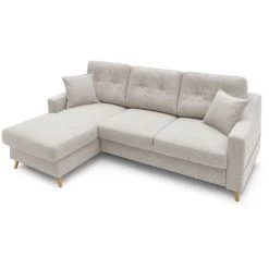 Définitivement inspiré du style scandinave, le canapé d’angle convertible coffre SWEDEN a tout pour plaire. Une assise confortable et moelleuse, un dossier résistant et un coffre de rangement spacieux. Craquez pour les lignes élégantes et distinguées de ce canapé nordique, idéal pour un salon chic et moderne. Il apportera à votre intérieur, charme et chaleurosité.