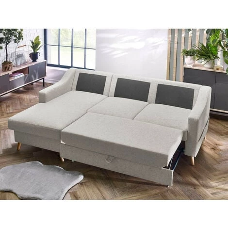 Le canapé d’angle convertible SWEDEN est non seulement design mais pratique avec sa fonction couchage et son coffre de rangement. Il vous séduira grâce à son confort et à son accueil moelleux !