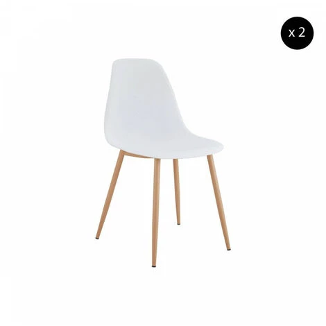Chaises avec assise en polypropylène et pied en métal impression bois