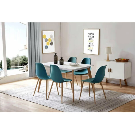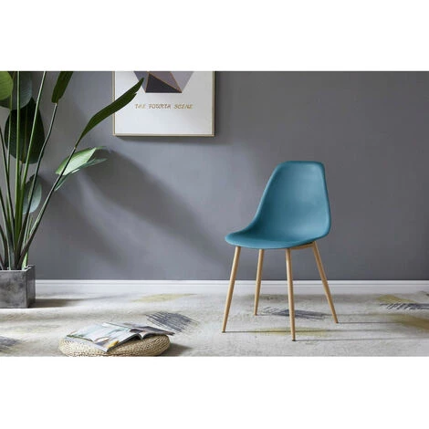 Chaises avec assise en polypropylène et pied en métal impression bois