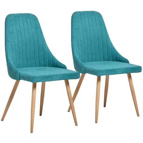 Découvrez cet ensemble de 2 chaises NITO turquoise et bois clair de style contemporain avec un revetement en tissu et les pieds en métal