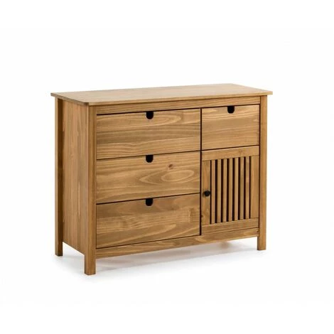 Commodes BOBOCHIC - Commode 4 Tiroirs 1 Porte CAPRI Bois Clair - Marron -BOBOCHIC Soldes 2022 23409609 2