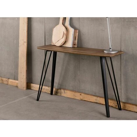 Console BOGOTA 120cm Plateau aspect chêne pieds metal