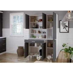Buffet De Cuisine BOBOCHIC – Buffet Cuisine 120cm KUISINA 6 Portes Et 1 Tiroir Gris + Blanc – Gris + Blanc