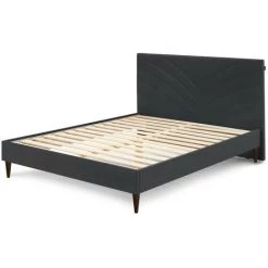 Découvrez la structure de lit VELVET avec lattes massives, en bois, recouverte d’un tissu en velours. Alliant qualité et beauté, elle se dévoile également pratique car grâce à la hauteur de ses pieds, vous n’aurez aucun mal à entretenir votre sol. Les pieds de cette structure sont en wengé pour apporter une touche chic.