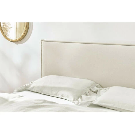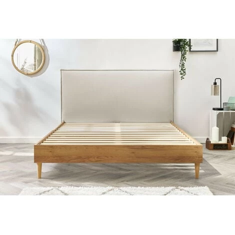 Lit habillé en tissu – Pans de lit Hauteur 17 cm en panneau mélaminé décor bois et tête de lit en tissu modèle CARA H100 cm – 4 pieds coniques droits H15 NATUREL – A monter soi-même – Montage sans outils – Sommier inclus 14 lattes massives multiplis