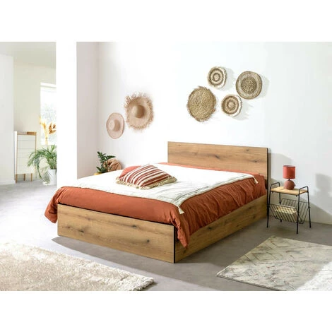 Découvrez le lit coffre JULIEN au design unique et inspiré du bois rustique. Epuré et élégant, il s’adaptera à votre chambre tout en la sublimant. Ce lit est équipé d’un spacieux coffre vous permettant d’optimiser votre espace. En plus d’obtenir un couchage fonctionnel, vous bénéficierez d’une tête de lit et d’un sommier avec lattes incluses. Fabriqué en mélaminé, il ne sera pas difficile de l’entretenir pour garder un intérieur propre.