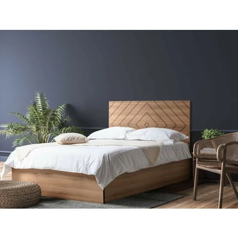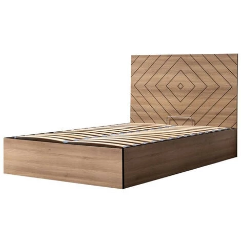 La structure de lit ALVANA, par le design contemporain et original de sa tête de lit, trouvera parfaitement sa place dans votre chambre. Très pratique, elle dispose d’un sommier avec lattes massives qui apportent un grand soutien à votre matelas pour vous offrir une nuit paisible. Son coffre, très spacieux, est parfaitement adapté pour maximiser vos rangements. Matelas non inclus.