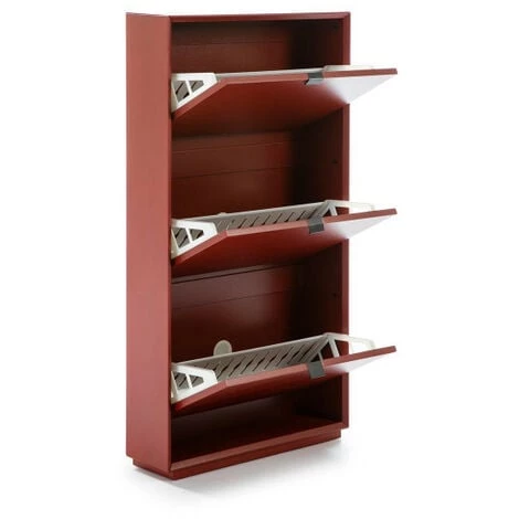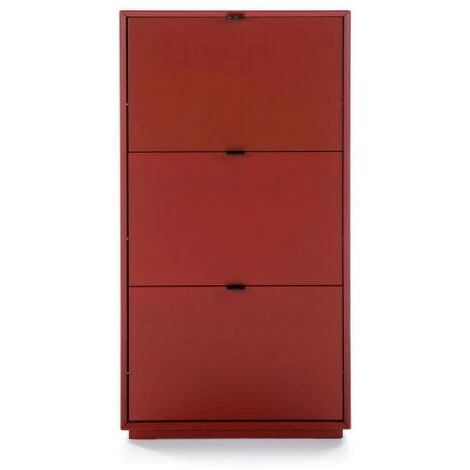 Ce meuble à chaussures LILA vous permettra d’avoir une entrée propre et dégagée grâce à ses 3 portes qui dissimulent plusieurs larges espaces de rangement. N’étant pas le plus haut, vous pourrez le nicher dans un petit comme dans un grand espace. Vous pourrez également l’agrémenter de petites décorations sur son plateau comme un pot pour y ranger ses clefs. Pour embellir votre intérieur, ce meuble à chaussures possède une finition laquée qui permet de rendre la pièce plus lumineuse et de résister à l’humidité. Ses poignées en métal donneront une touche de classe et de résistance supplémentaire.