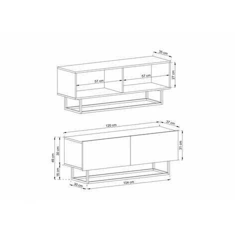 | DIMENSIONS DU MEUBLE : Longueur : 120 cm DIMENSIONS DES COLIS : Colis 1 : 136 x 43 x 8 cm / 18 kg |
