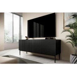 Meuble TV Kasha 150 cm doté de façades striées tendance. Fonctionnel avec ses 2 compartiments.