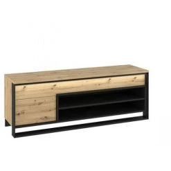 Pour accompagner votre télévision, optez pour le meuble TV KYRIA qui se fera un plaisir d’habiller votre pièce à vivre. Ses traits épurés de couleurs bois et noir lui offrent une place dans un intérieur issu du style industriel. Pour accentuer ses nuances de couleur, bobochic a ajouté la signature de cette collection, à savoir ses pieds en métal noir et ses LED décoratifs pour une touche chic et élégante. Sophistiqués mais pas que, ses généreux rangements le rendent fonctionnel. Grâce à son étagère et à son tiroir, les magazines qui traînent et les télécommandes ne seront plus qu’un mauvais souvenir. Pour accompagner votre meuble de rangement, craquez pour le reste de la collection tout aussi somptueuse.
