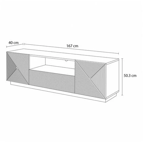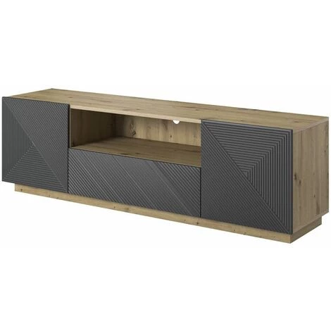 Meuble TV doté de deux compartiments de grande capacité, d’un tiroir et d’un trou passe-câbles.