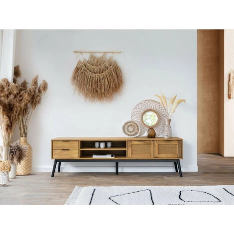 Découvrez le meuble TV ALBI qui vous apportera du rangement, pour un coin télévision organisé et tendance ! Son style contemporain habillera votre intérieur et son bois massif y apportera un cachet incomparable.