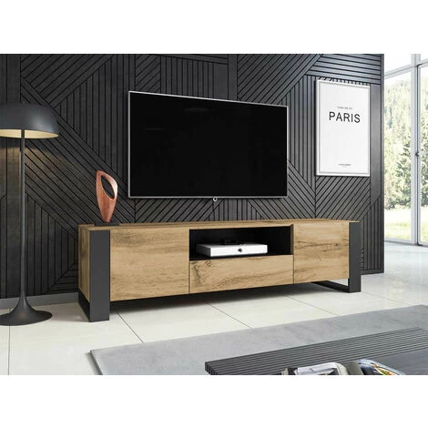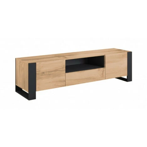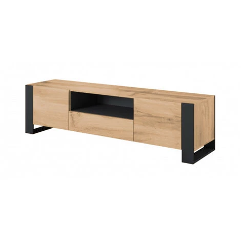 Le meuble TV Nunki a une beauté unique et naturelle. Sa couleur chêne wotan combiné au pieds en métal lui donne beaucoup de caractère. Très fonctionnel, il dispose d’une niche centrale et 2 étagères. Le meuble TV Nunki n’aura pas de difficulté à trouver sa place dans votre intérieur.