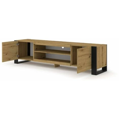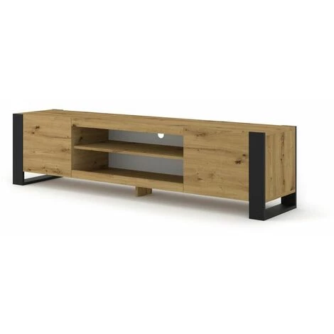 Le meuble TV MONDI saura vous impressionner par son style. Ses pieds en forme de cadre lui donne du caractère et sa couleur chêne apporte le côté naturel à votre pièce. Il dispose de spacieux rangements, 2 étagères et 2 niches. Ses pieds lui apportent de la stabilité, renforcé par un support supplémentaire au milieu.