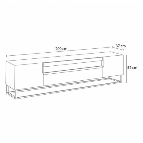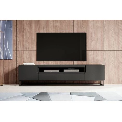 Meuble TV 200 m Dalia sur pieds en métal doté de 3 compartiments et une niche centrale.
