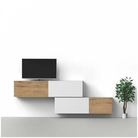 Découvrez le meuble tv suspendu NOVA ! Très fonctionnel, disposez le meuble tv suspendu à votre convenance, horizontalement ou verticalement, et associez le avec les autres modules de la collection NOVA. Il dispose de quatre niches de rangement et d’un large plateau de 180 cm, de plus ses portes sont interchangeables En alliant le chêne artisan et le blanc, le meuble tv NOVA s’inscrit dans la tendance.