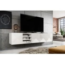 Meuble TV à suspendre Elia 200 cm doté de 5 compartiments. Façades chevronnées.