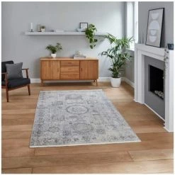 Tapis BOBOCHIC – Tapis Poil Mi-long Rectangulaire ANNE Motif Oriental 120×170 Gris – Gris