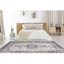 Tapis BOBOCHIC – Tapis Poil Mi-long Rectangulaire CAMEO Motif Vintage 80×150 Anthracite – Anthracite