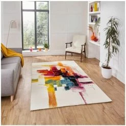 Tapis BOBOCHIC – Tapis Poil Court Rectangulaire COOKA Motif Oriental 120×180 Ivoire – Ivoire