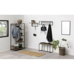 Vestiaires Meuble Entrée BOBOCHIC – Vestiaire 165 Cm MAXIME Bois Et Noir – Bois Et Noir