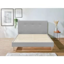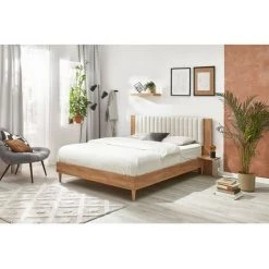 Lit BOBOCHIC – Lit 160×200 Cm SELENA Lattes Massives Pieds En Bois Naturel 160×200 Beige – Beige