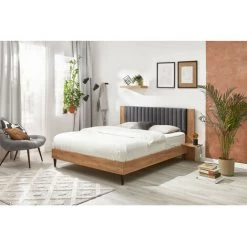 Lit BOBOCHIC – Lit 160×200 Cm PERRY Avec Lattes Massives Pieds Carrés Wengé 160×200 Marron – Marron