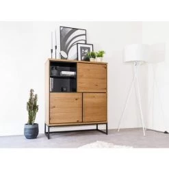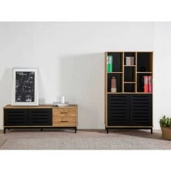 Buffets BOBOCHIC – Buffet Haut AUSTIN Noir Et Bois Clair – Bois Et Noir