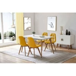 Chaise Et Fauteuil De Table BOBOCHIC – Lot De 4 Chaises MARIUS Tissu Jaune – Jaune
